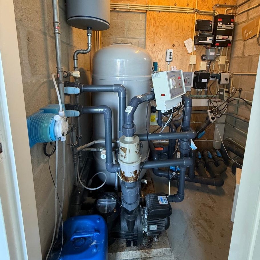 De complete pompinstallatie is netjes weggewerkt, waardoor deze optimaal functioneert zonder het aanzicht van de tuin te verstoren.